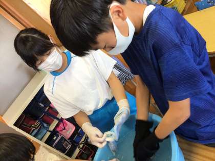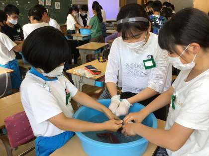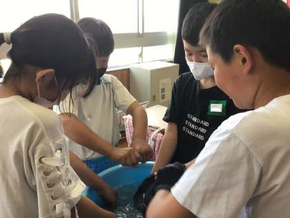 3組の洗濯実習の様子です。 気持ちよさそうでした。