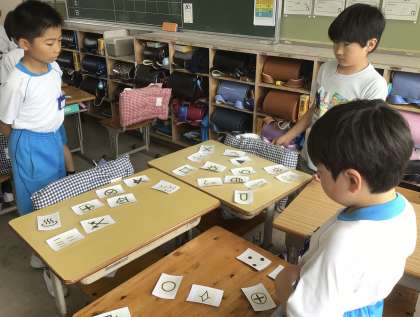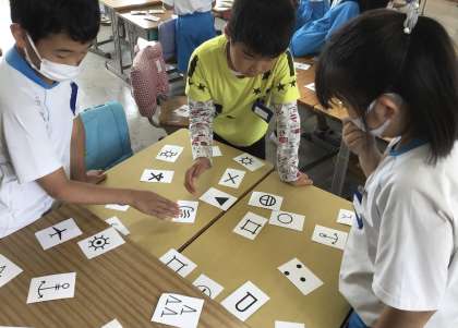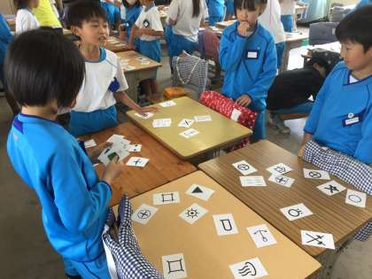 3組の授業の様子です。地図記号の書かれたカードでゲームをしていました。大いに盛り上がっていました。
