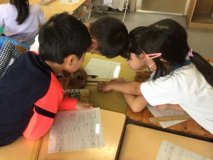 10cmをもとにしてものの長さを予想してから、実際にものさしではかりました。