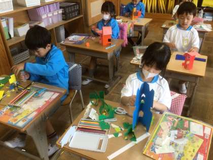 楽しく話をしながら想像を広げて作品づくりをしました。