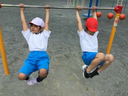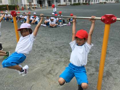 鉄棒の学習をしています。