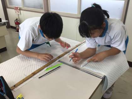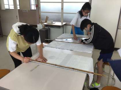 ナップザックづくりの第一歩。しるしづけをしました。