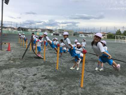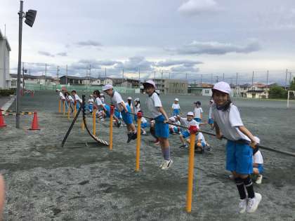 鉄棒の学習に取り組んでいます。ツバメに挑戦。