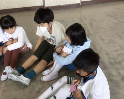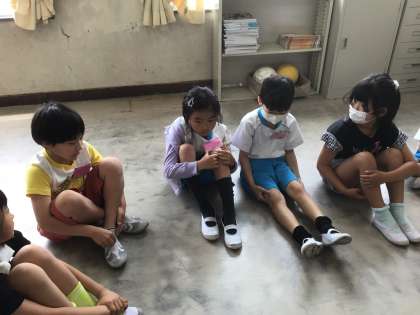 この日は、初めてのわくわく活動がありました。顔合わせ会ということで、班の子の名前を覚えるために、班の子の名前を呼びながらばくだんゲームをしました。