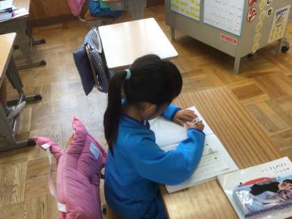 「とんこととん」の学習です。最後の場面に、続きがあるとしたらどんな会話をしているのかを考えています。