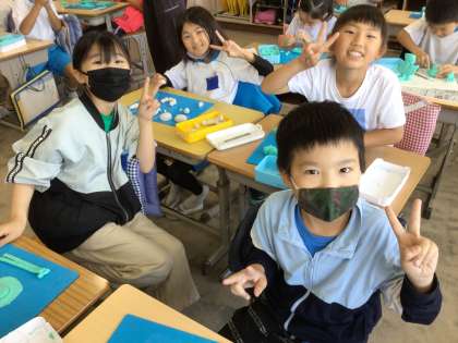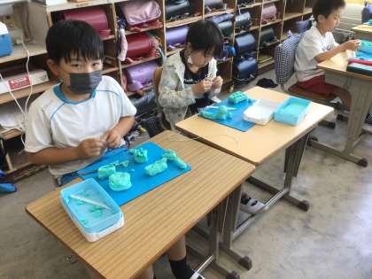 学習用タブレットを使って、作った作品の写真を撮りました。撮った写真を発表ノートに貼りつけて提出しました。