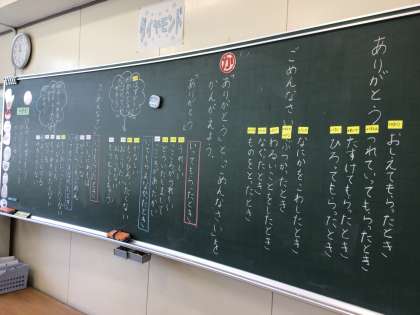『「ありがとう」「ごめんなさい」』の学習で、友達に伝えた時と伝えなかった時のお互いの気持ちについて考えました。