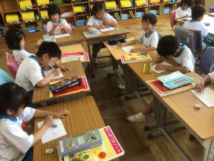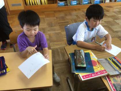 「なつとなかよし」の計画を立てました。どんなことをしようかな?何を使おうかな?グループの子と相談しながら、考えました。