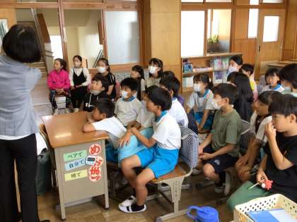 4年生になっても楽しみな読み聞かせ。今日は「シロクマのしゅくだい」「ぱんつさん」「あげる」を読んでいただきました。「あげる」は、色々な揚げ物のお話でした。びっくりな物がフライに?!