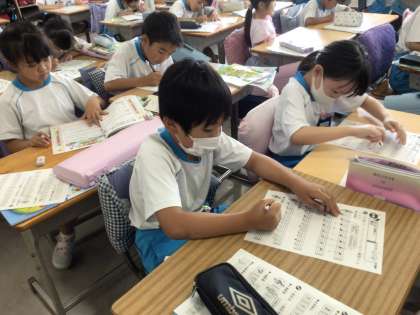 1組の授業の様子です。鍵盤ハーモニカの練習をしていました。