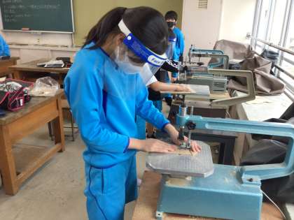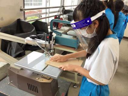 糸のこぎりを使って作品作りをしています。