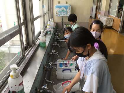使い終わった道具を丁寧に洗っていました。
