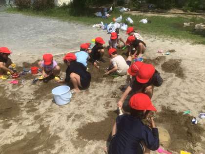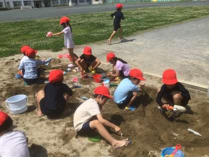 友達と声をかけ合って、砂を掘ったり積んだりして楽しみました。