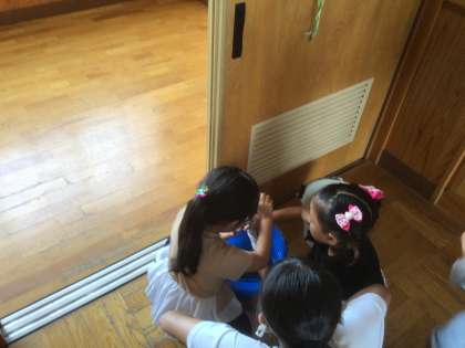 掃除で雑巾を使い終わると、しっかり洗います。その後、ぴんと伸ばしてぞうきんを干します。きれいに整頓までして終わっています。