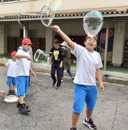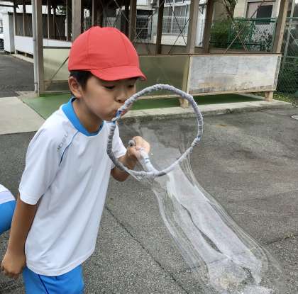 曇りや雨だと、しゃぼん玉がきれいな虹色に見えるそうです。