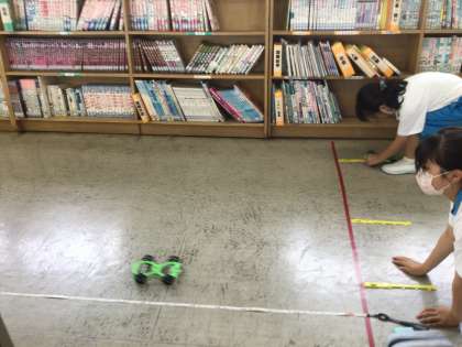 3組の様子です。図書館や絵本の森で実験をしました。