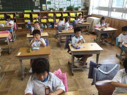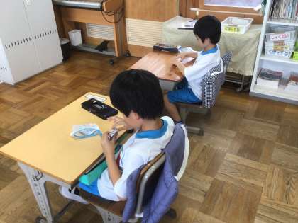 計算カードの練習です。今日から、音読カードに計算カードも練習できるように準備しました。お家で練習できるといいですね。