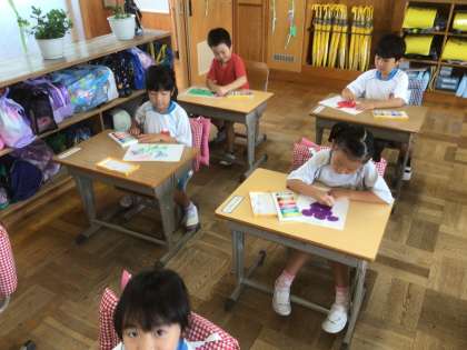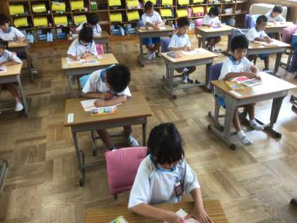 来週に、豊田特別支援学校のお友達と交流をします。そのために、自己紹介カードを作りました。