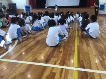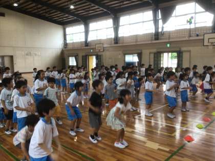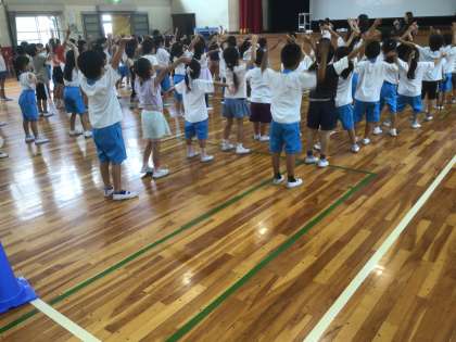 きょうは、豊田特別支援学校さんと、交流の日でした。お互いの紹介をした後、交流の歌を歌って踊って楽しみました。