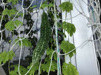 理科の授業で育てているツルレイシです。4年生も、たくさんの夏休み応募作品を受け取りました。素敵な作品ばかりです。