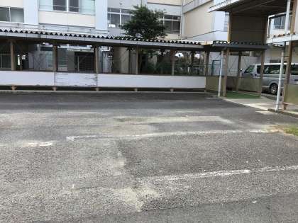 北門を入って右に曲がると右手に体育館があります。