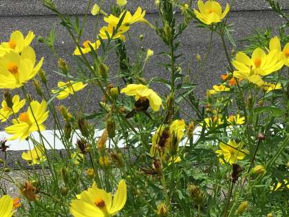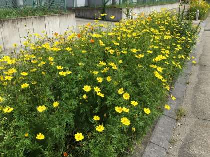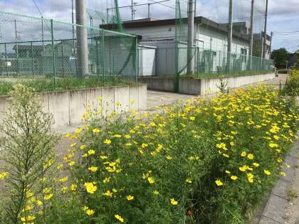 北門に近づくと、右手にコスモスの花を見ることができます。