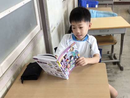 今日から、図書館の本を借りることができるようになりました。早速、本を借りて読書をしている子もいます。