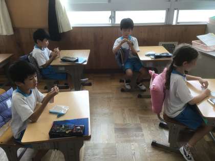 夏休み明けの計算カード練習、はりきって行いました。しっかり練習した成果を、見せてくれる子もいました。