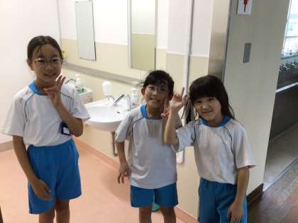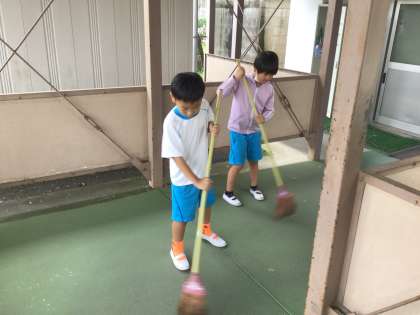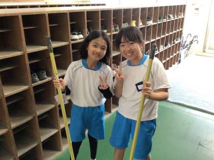 今日の掃除の様子です。体育館に続く渡り廊下と昇降口、トイレの掃除担当者です。