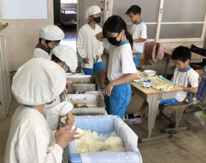 準備係、給食当番など一人一人が責任をもって活動でき、配膳時間がとても短くなりました。
