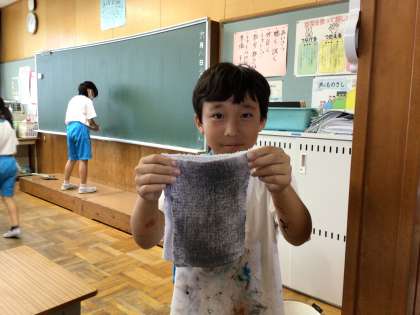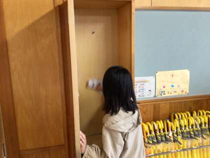 雑巾が真っ黒になるぐらい、一生懸命掃除をしています。掃除道具入れの中も綺麗にしています。みんなありがとう!