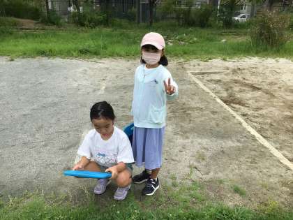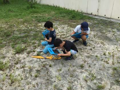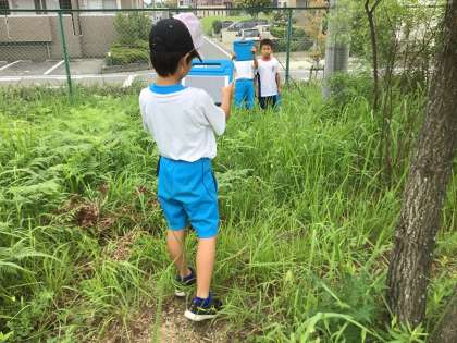 今日は、運動場にいる虫の写真を学習用タブレットで撮影しました。