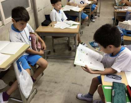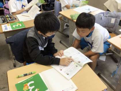 2つの表を見て、気付いたことを隣の友達に伝えています。