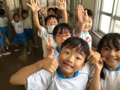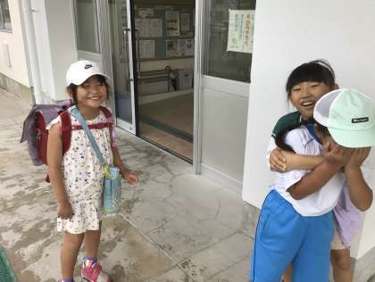 2年生になっても、とても元気よく過ごしています。また、3年生と一緒に挨拶ボランティアに参加している2年生です。