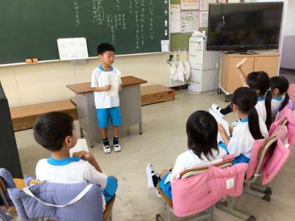 「はなしたいな ききたいな」の学習で、夏休みの思い出発表会をしました。