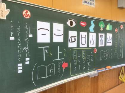 「かんじのはなし」の学習です。1から10までの漢数字の次は、山や川。漢字の成り立ちを知り、「知ってた」「知らなかったから、もっと知りたくなった」などと、振り返りました。