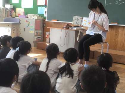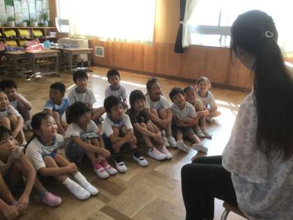「もうぬげない」の読み聞かせが始まったとたん、みんなにっこり。この本を持っている子が多く、大好きな本だったようです。友達と笑い合って聞きました。