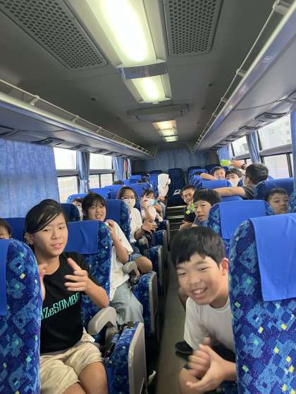 旅館に向かうバスの途中。 旅行中の輝き発表中です。