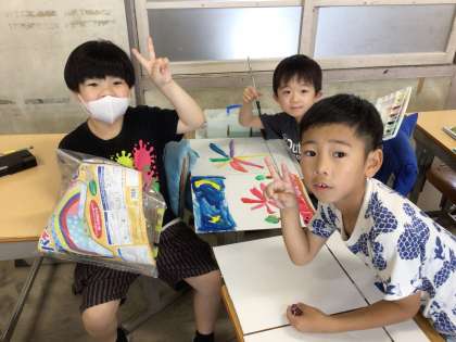 絵だけでなく色の使い方も一人一人違っています。それぞれの個性が輝いています。まさに、みんな違ってみんないいという感じでしょうか。笑顔で取り組んでいたところも良かったです。