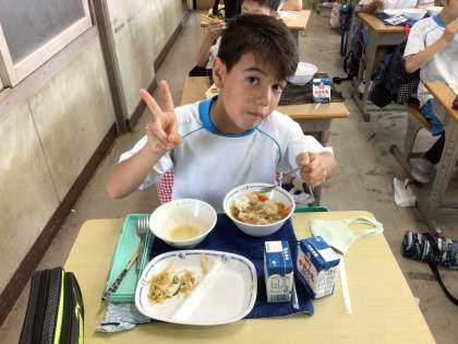 10日前の給食の様子です。4月の頃に比べてたくさん食べるようになりました。体が大きく成長しているからでしょうか。それにともなって残菜の量がとても減ってきました。カレーライスや焼きそばなど子ども達に大人気のメニューは、量が足りないぐらいです。