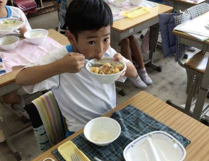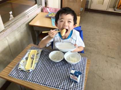 この日の給食も子ども達に大人気の肉じゃがでした。野菜好きな子も多くて、肉じゃがだけでなくサラダも足りないぐらいです。どの子ども達もとても美味しそうに食べています。