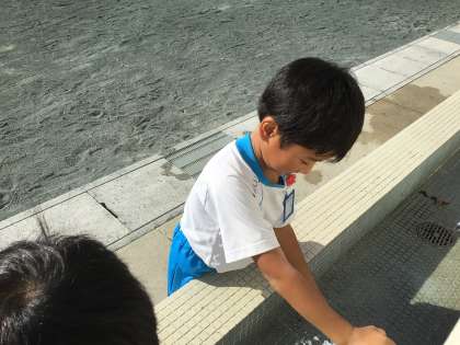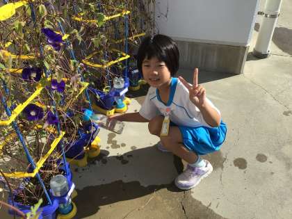 みんな笑顔でで水やりをしています。今年の1年生も素敵ですね。