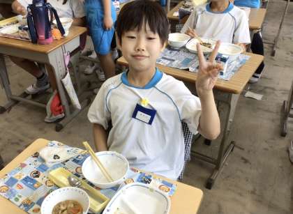 今日の様子です。給食当番の準備が早くでき、よく噛んでゆっくり食べることができました。