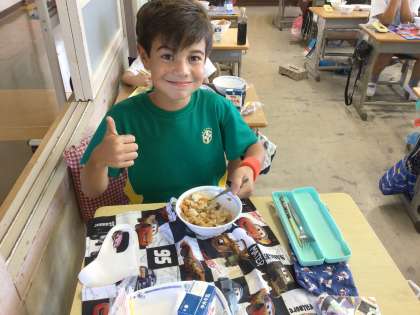 サッカーが大好きな3年生です。元気よくたくさん食べていました。将来の夢は、サッカー選手になることだそうです。