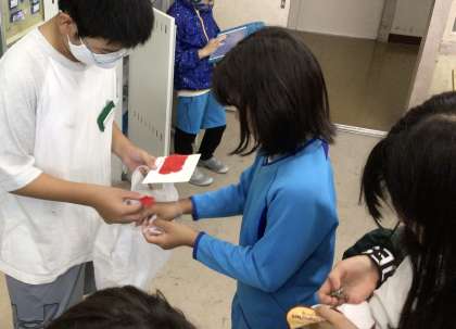 今朝の様子です。元気よく挨拶しています。赤い羽根募金活動もありました。次の募金は、10月10日(火)です。