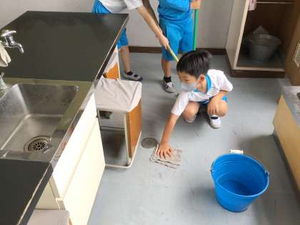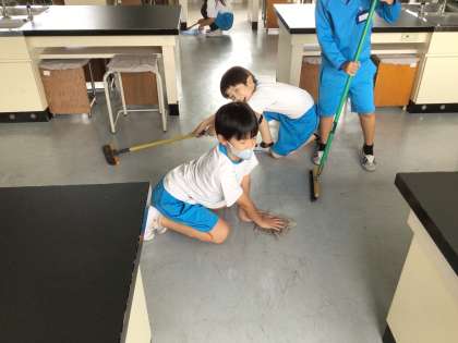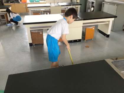 理科室の掃除です。広い教室ですが、隅々まで丁寧に掃除してくれています。