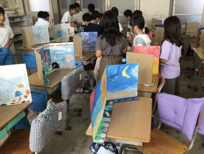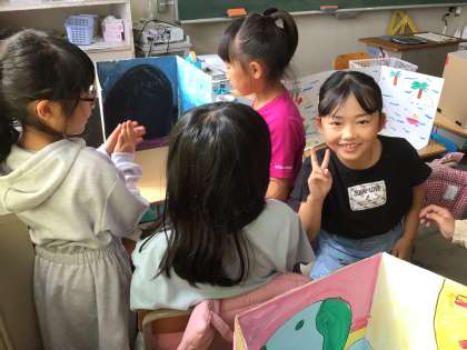 友達の工夫したところ、良かった所をグループで伝え合いました。次の授業からは、読書感想画になります。読み聞いた本の内容の中で、特に印象に残った場面を絵で表します。