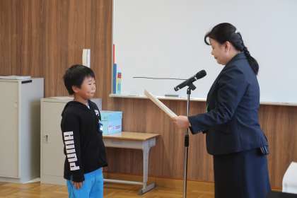 前期終業式にて、表彰されました。文詩集「ひまわり」生活文と読書感想文コンクールで、それぞれ特選を受賞しました。堂々とした立派な態度で受賞しました。