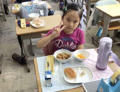 前期最後の給食です。最後まで美味しそうに食べていました。この後、掃除、帰りの会を行って下校しました。