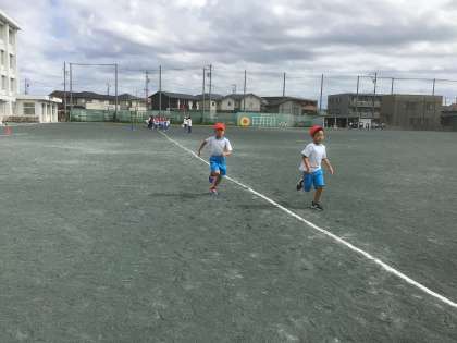 スポーツフェスタに向け、かけっこ練習の準備をしました。みんなが、どれぐらい成長しているのか、5月以来の計測です。
